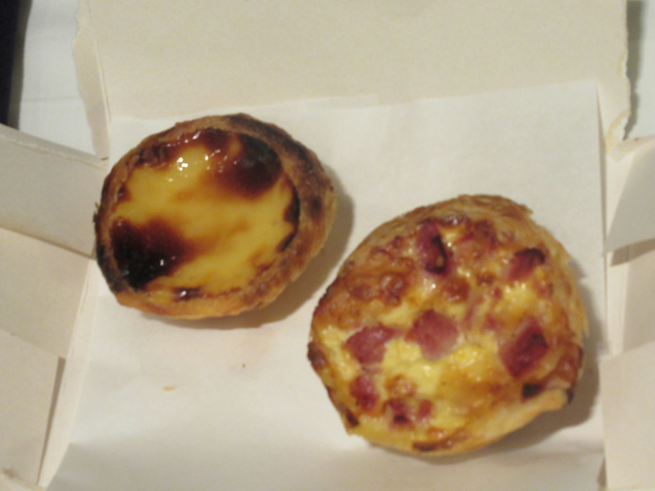店の入り口横に大きなパステル・デ・ナタが飾ってあるのが目印です。パステル・デ・ナタはフワフワクリームでおいしいですが、ほかにもナタのパイ生地の中に違うものが入っているのもありました。ベーコンなどのピザみたいな味のがすごくおいしかったです。ほかにサンドイッチなどもありました。
