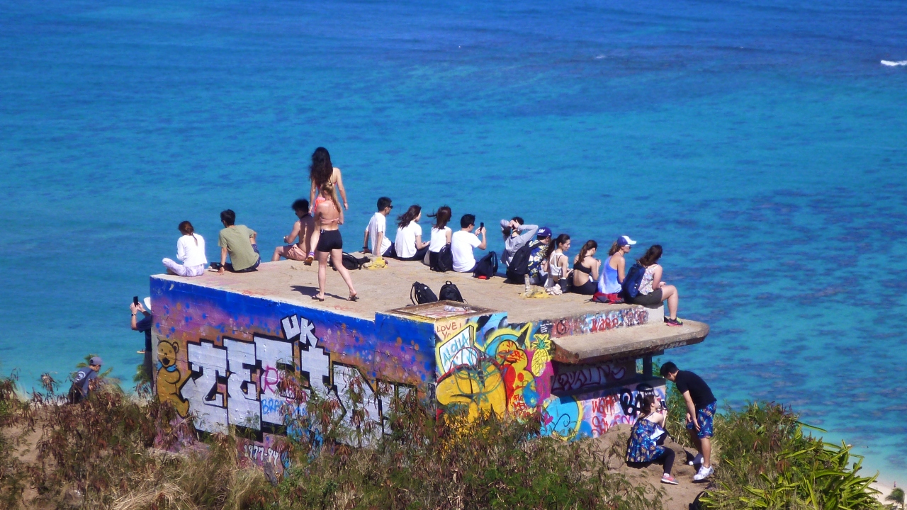 ラニカイビーチまで来たら後ろの山のてっぺんにあるラニカイピルボックスは絶景ですよ。ビーチは暑いですが山頂は涼しいです。