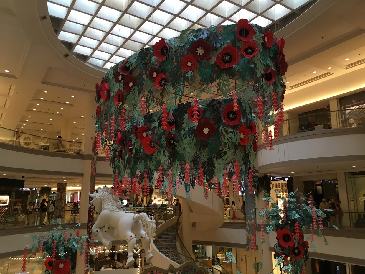 チットロム駅からスカイウィークを歩いて数分です。高級ブランドのショップばかりです。カフェは手ごろな値段の店が何店舗かあったので利用しました。ショッピングに興味はありませんが、旧正月のデコレーションがきれいで感動しました。