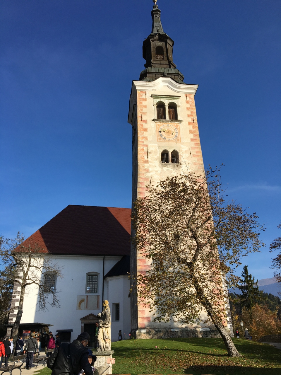 スロベニアの首都、リュブリアーナから北西に50キロほど行ったところにある、ブレッド湖に浮かぶ小島にあるのが、この聖母被昇天教会です。小島にあるので小さな教会ですが内部は美しい祭壇と装飾で、ここの祭壇の前にある長い紐を引っ張って教会の