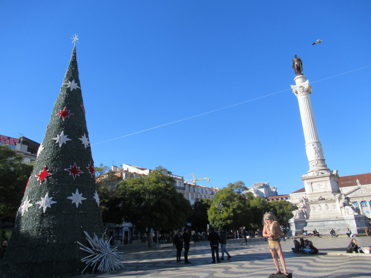噴水が2つあり、高いところには初代ブラジル皇帝の国王ペドロ4世の銅像がある。波模様の石畳はマカオを思い出すがこっちが本家。1月だが巨大なクリスマスツリーがまだ残っていた。
