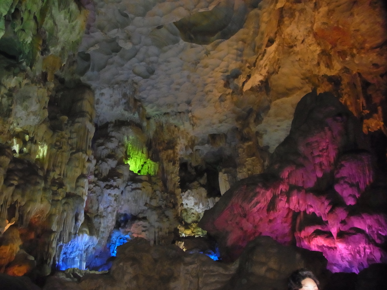 ハロン湾クルーズと必ずセットになっているのがこのティエンクン洞窟。謎のライトアップでお出迎えしてくれます。特にかわり映えもしません。特にこれといった洞窟でもありませんが、セットになっているのでプラプラしてみましょう
