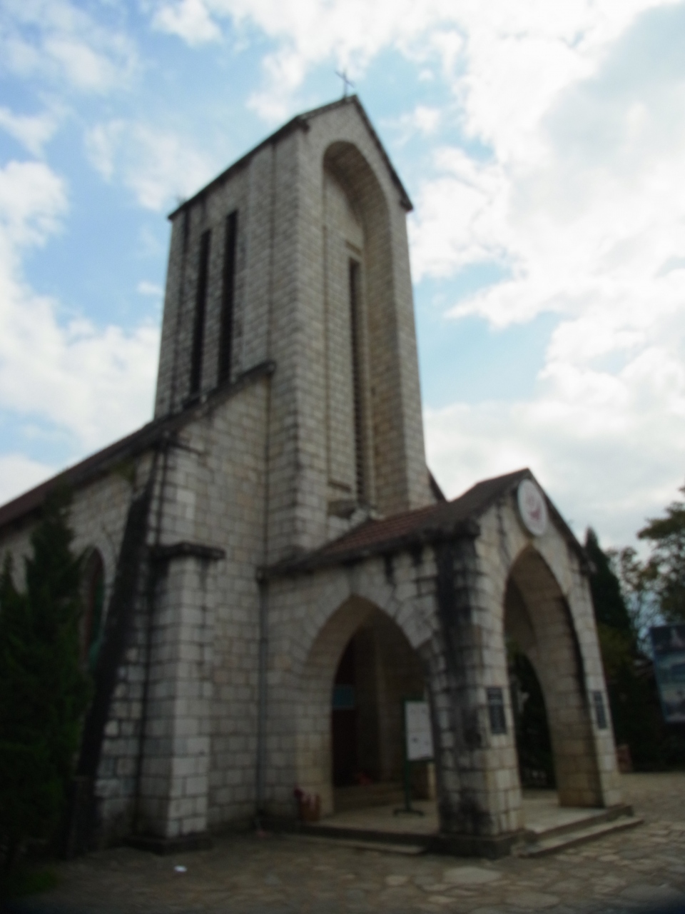 サパの中心部にある教会です。目の前にはタクシーやバイタクがたくさんいます。少数民族の方たちもみんな休憩しています。教会内は入れます。小さな教会なのですぐみ見終わってしまいます。必ず見ることになる教会。