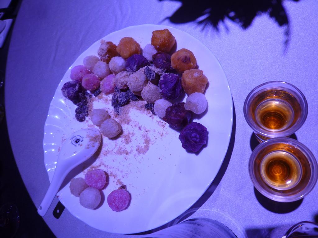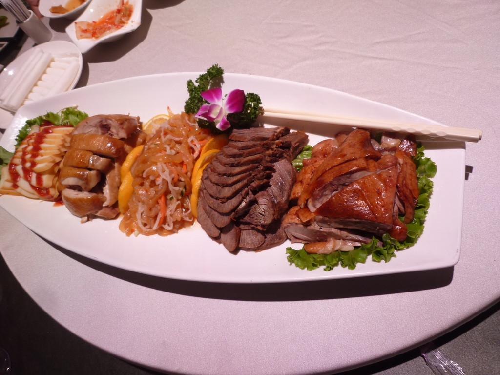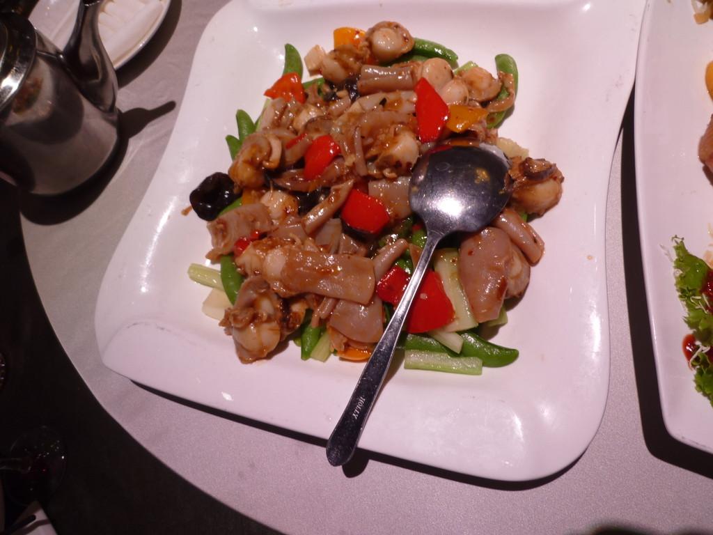 鶏肉とフカヒレのスープ、イカと野菜炒め、蝦と羊肉、蝦料理、魚料理、おこわ、