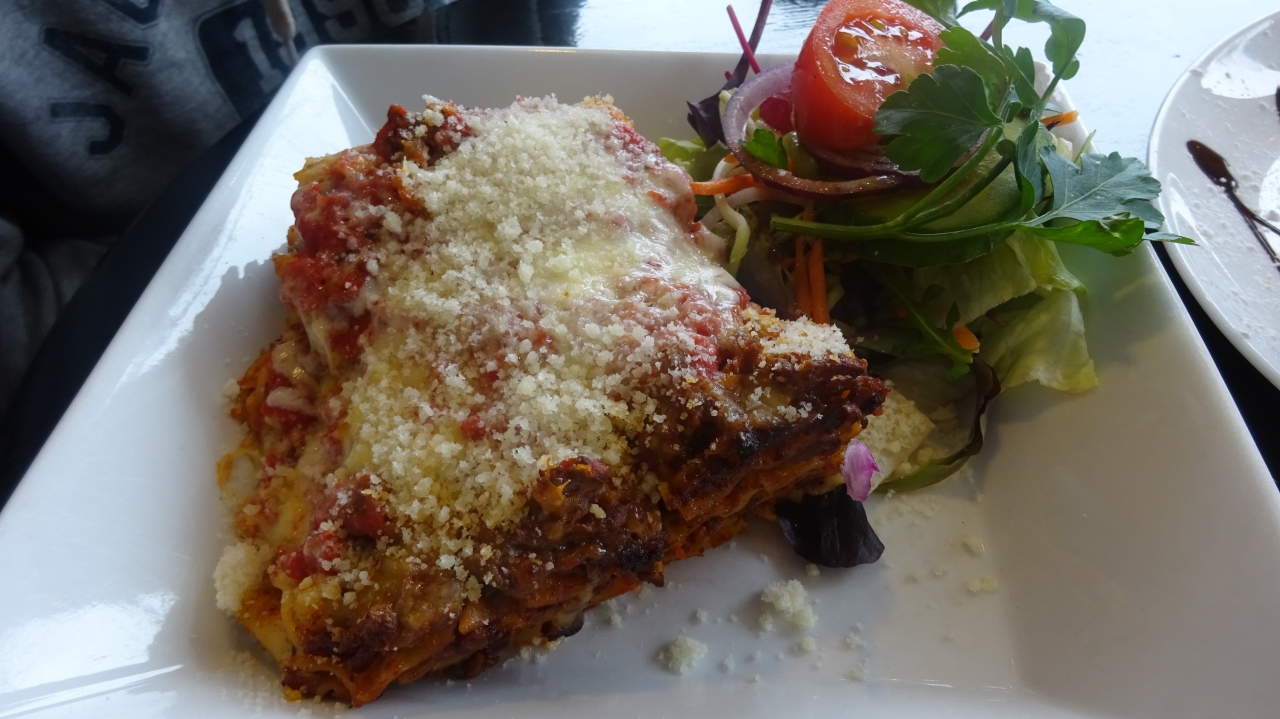 週末のランチは、12時ごろは混んでいました。ラザニア、パイ、ワッフルなどを頂き、