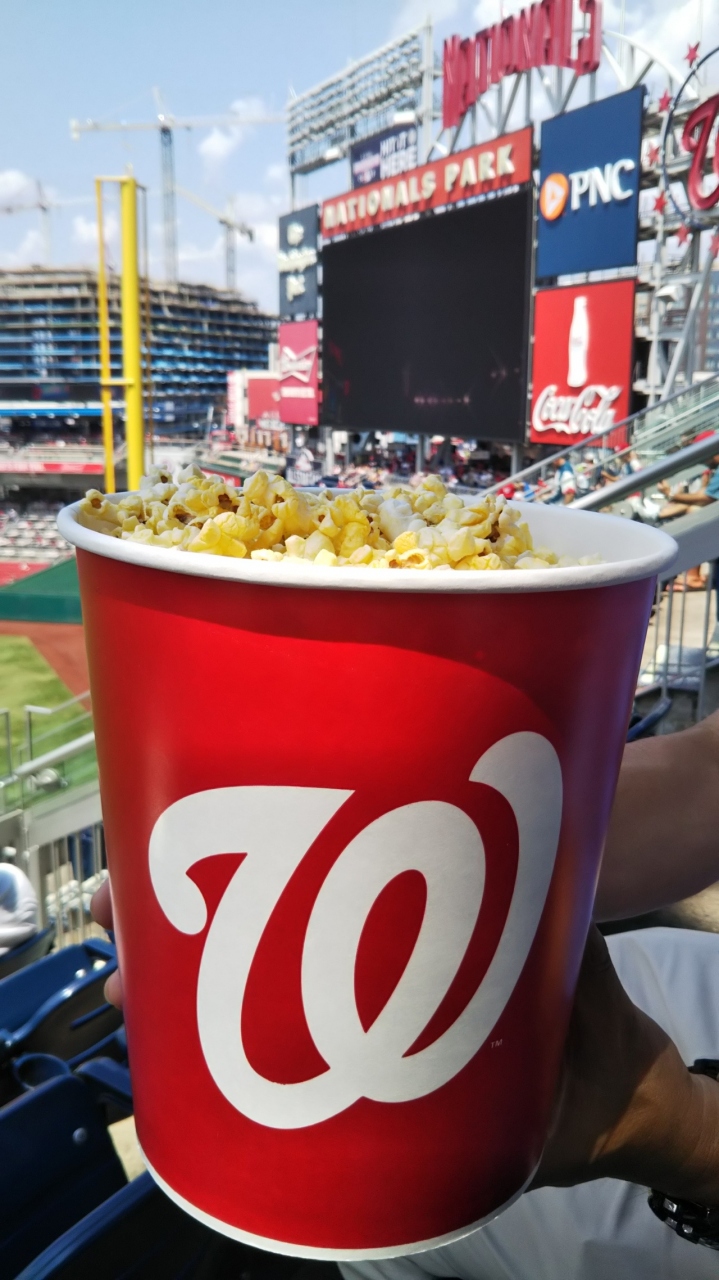 ホテルに入れる3時まで時間があったので、当日一番安い席を14ドルで買いました。ワシントン.ナショナルズVSフィラデルフィア.フィリ-ズの試合でしたが、日陰がなく、すっかり焼けてしまいましたが、ホットドックにお代り自由のポップコーンを食べながら、アナハイムに続いて2回目の大リーグを楽しみました。球場内にshakeshackもありました。