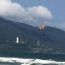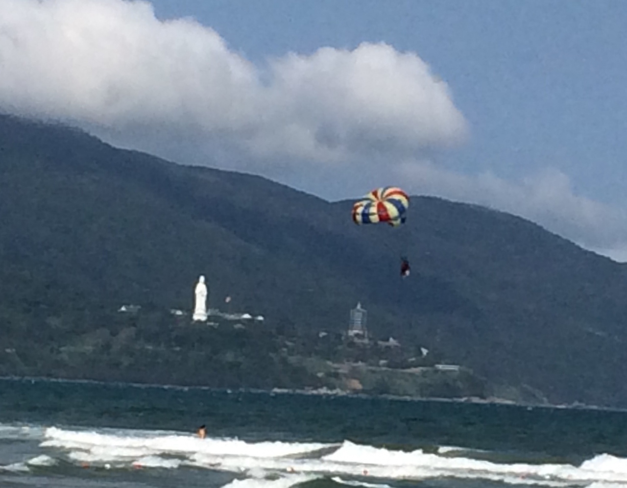 ダナンのミーケービーチから7Km北の海岸線からよく見えました。雲のない日はどこの海岸線からもよく見えます。67mの高さがあるだけに、遠くからも存在感もあり、白い波、青い空、緑の山とコントラストも良く、海岸線に向かって建っているので、ヒーチで遊んでいたり、海上で遊んでいると、何か守られているようで安心感がありました。