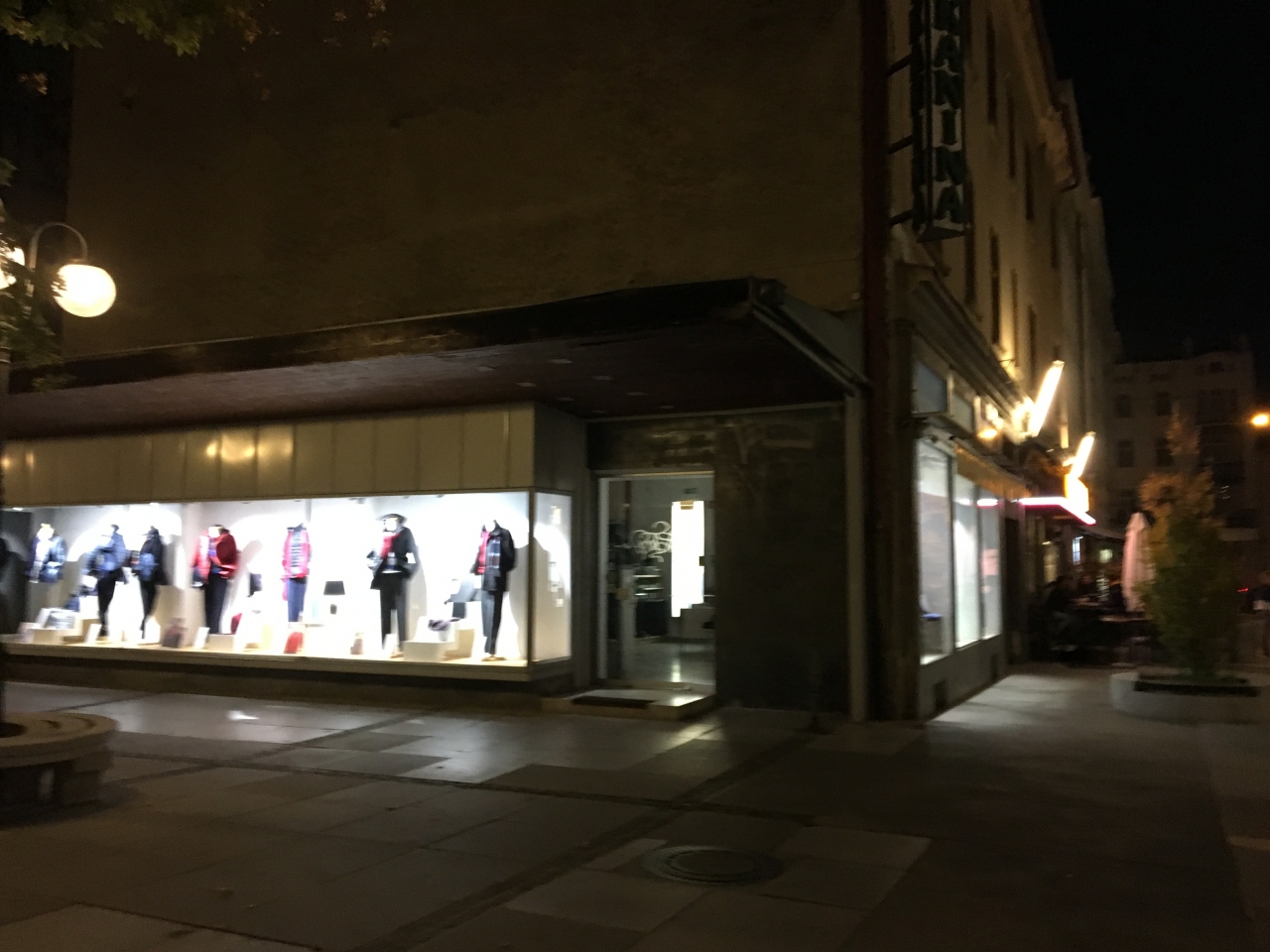 西に伸びる通りでブランドショップャレストランがが立ち並ぶ賑やかな通りです。