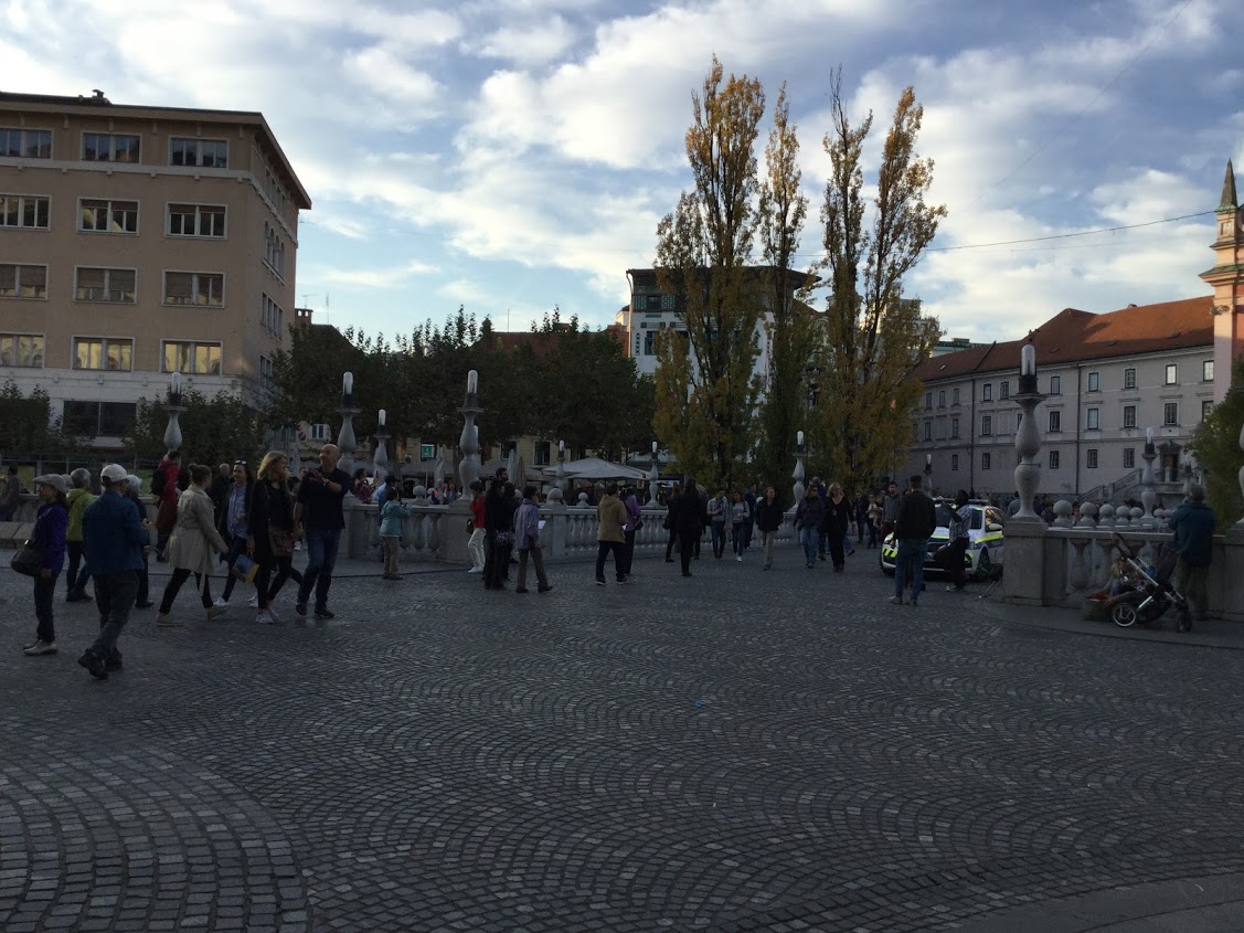 スロベニアの首都、リュブリアナの市街地の中心地、プレシェーレン広場から