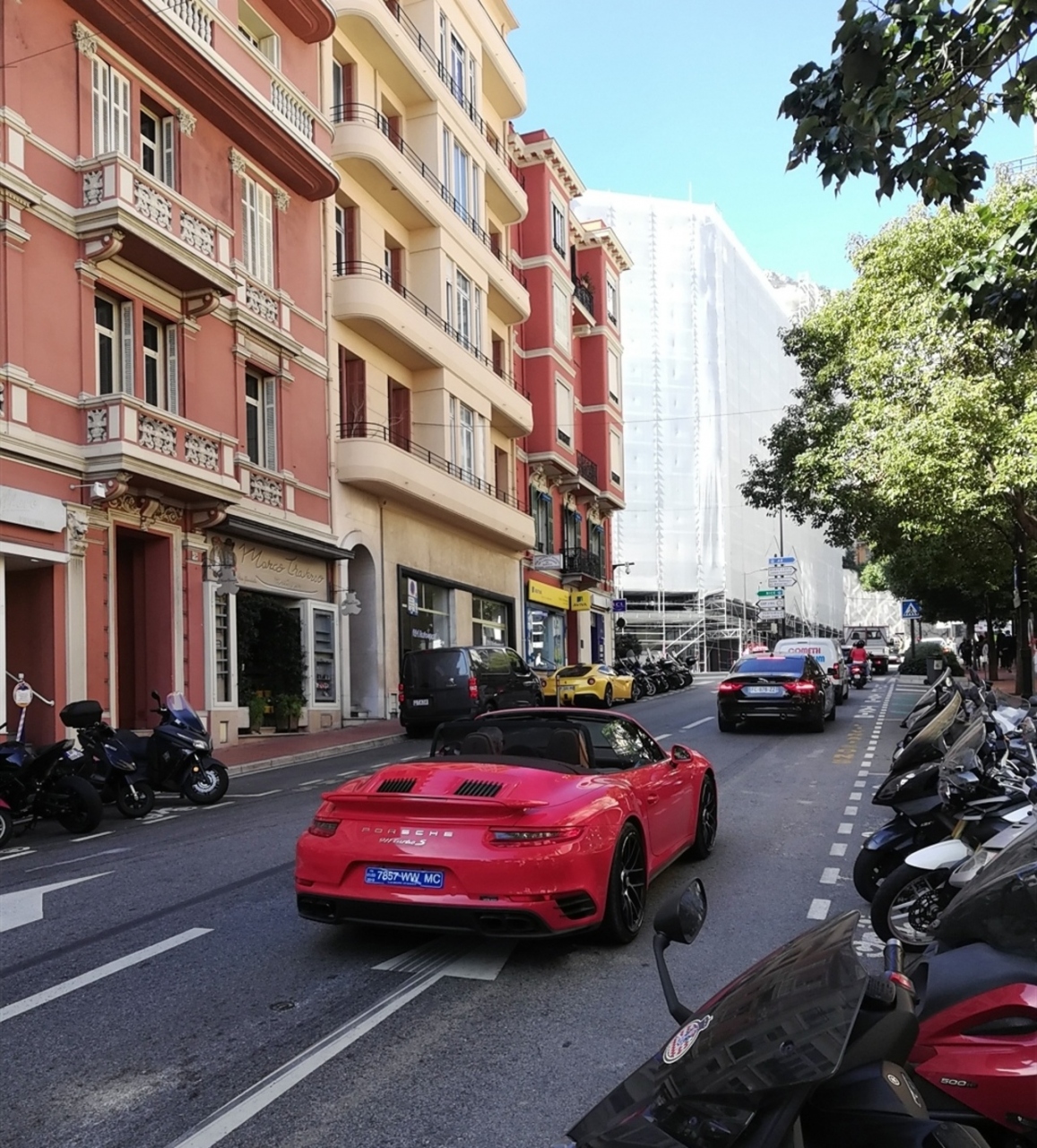 ニースからモナコまで行きは鉄道を利用しました。駅から王宮に向かう途中、フェラーリーのディーラーがあったり、道路ではベンリーやポルシェやスーパーがひっきりなしにとります。段差が激しく、崖に立っている家々が眺望が良さそうだげ、高所恐怖症の人は、、、