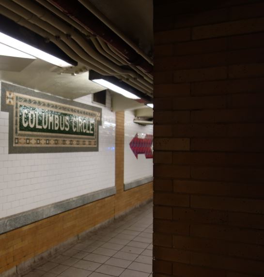ニューヨークの地下鉄のABCDのラインが交差する59丁目コロンバスサークル駅(59th Street Columbus Circle Station)はニューヨークの地下鉄の中で珍しくバリアフリーで地上階からのエレベーターがあります。地下はショッピングモールにもつながっています。