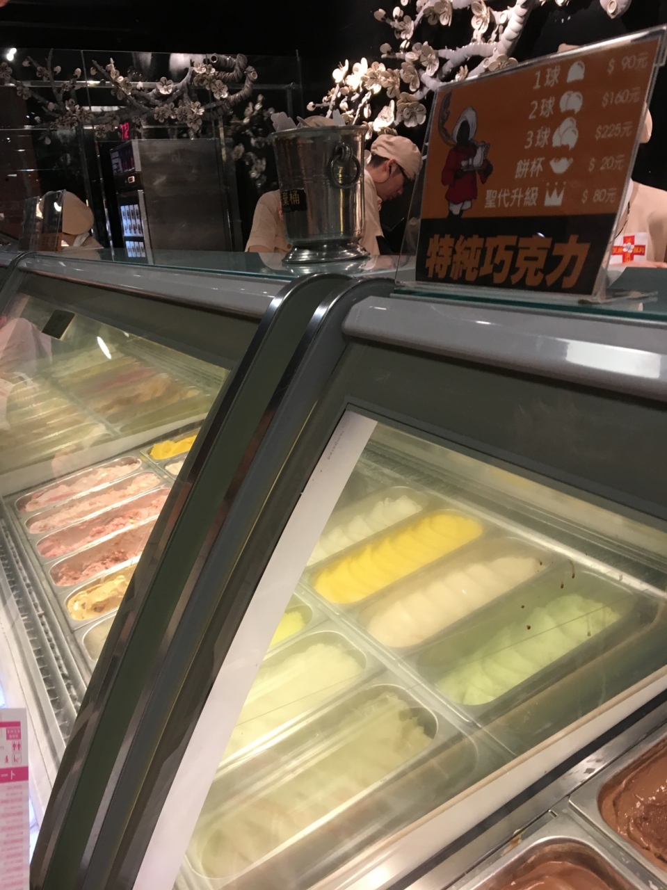 台中駅近くの再開発されてモダンな建物となった、土産店やレストランが入っている宮原眼科の一階にあるアイスクリーム店です。アイスクリーム店のみの入り口が外側からありました。一種類90元、二種類160元にコ一ンがプラス20元と高いですが、美味しいです。トッピングは、チ一ズケ一キがオススメです。