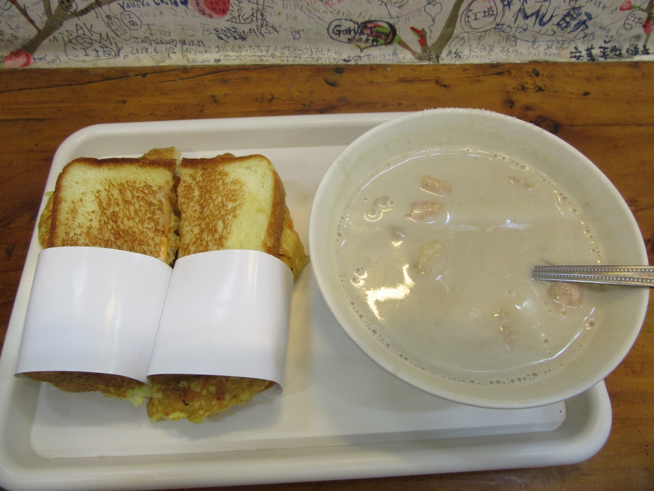 注文したのは前回と同じスペシャルトーストと豆乳。注文を受けてから丁寧に焼き上げ、鉄板で焼いている為、パンの水分が保たれふわっふわっ、しっとり、そしてアツアツ。もう朝から幸せな気分になりました。