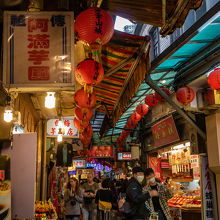 九份のメインストリートでもある基山街。土産屋や食堂が連なる賑やかな細い路地を、人をかき分けながら進むこの感じ、モン・サン・ミッシェルのグランド・リュを思い出します。というかモン・サン・ミッシェルよりも混んでるのでは。九份人気は僕の想像よりも遥かに上でした。