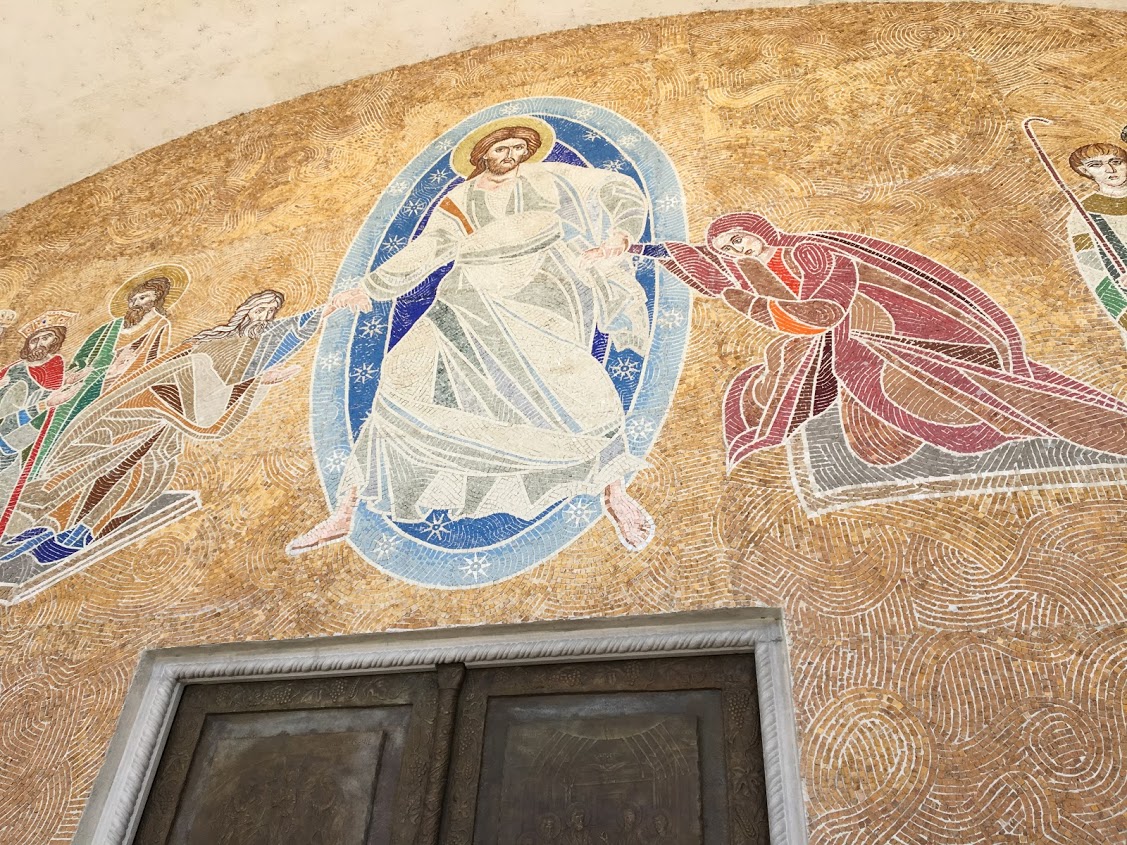 周りに何もない広場のようなところにポツンと建っていますが、外の寂しい風景から一変、内部に入ると驚くほど豪華で壁や天井、祭壇を金地の上にキリストと聖人の絵が覆い尽くしています。教会というより絵画を見ているようです。