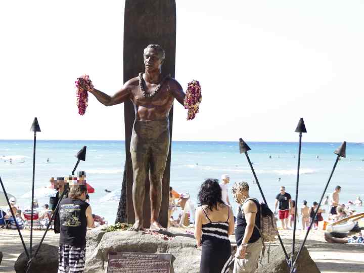 ワイキキビーチの周辺で、仲間と待ち合わせしたり、どこかを案内する拠点としてちょうどいいと思います。カハナモクというちょっと覚えにくい名前が出てこなくても、「サーファーの銅像」でみんなわかると思います。