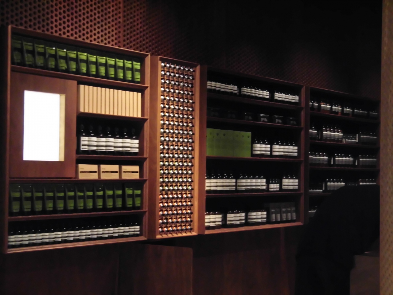 薬品のようで、でもとてもオシャレなパッケージです。 店員さんがいろいろテスターを試させてくれました。 自然素材といっても、日本人には少しきつすぎる匂いもありました。 やはり試してから購入しなくては、と思いました。 価格は日本より少し安く、種類はとても多かったです。