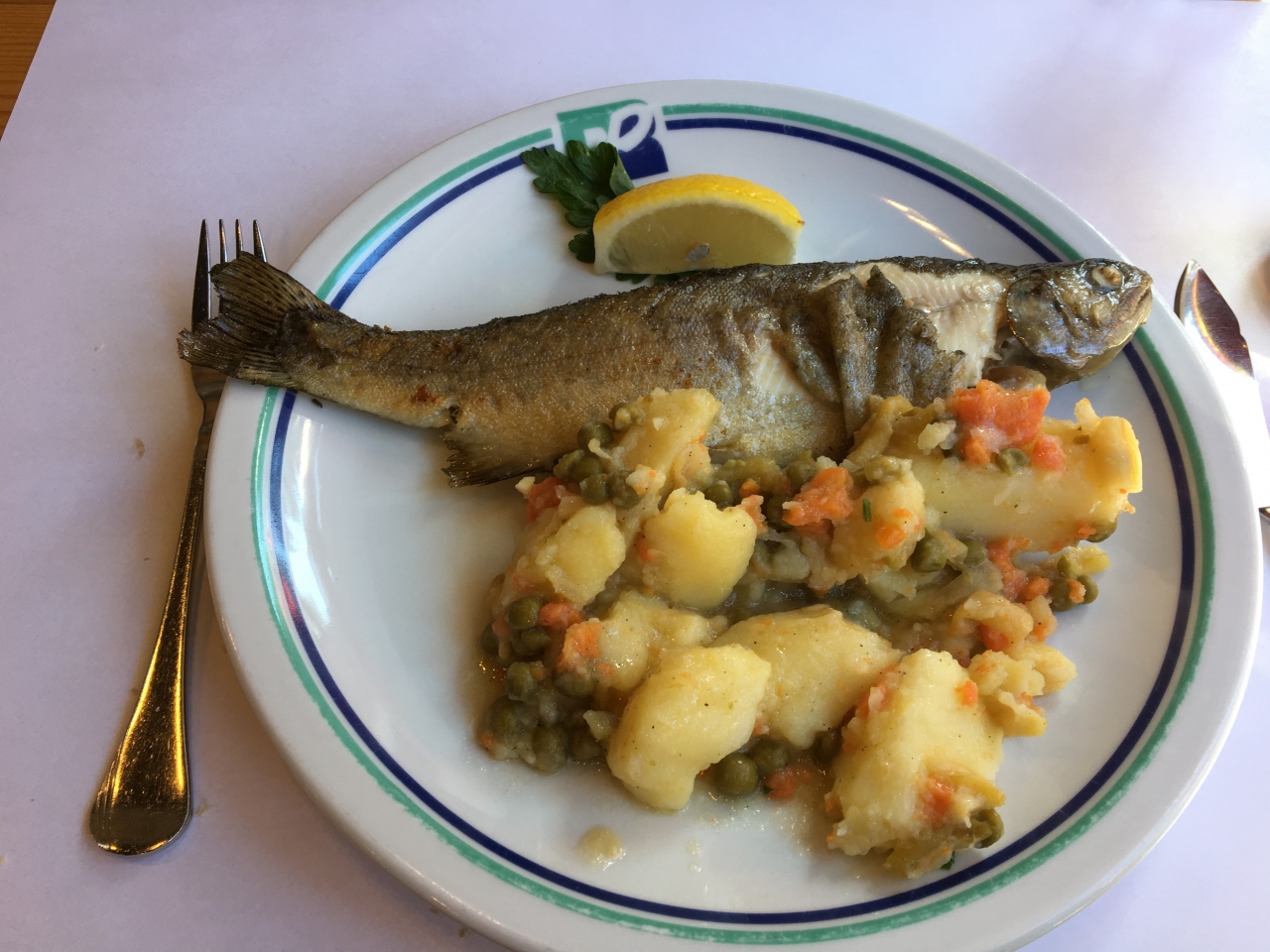 ここでは、湖群公園の湖で採れるマス料理を食べるのがこの公園に来る醍醐味のようです。とっても広いレストランでトイレは地下にありますが、こちらも大変広かったです。
