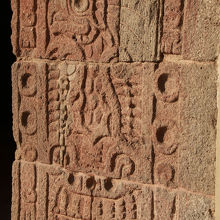 メキシコの世界遺産、テオティワカン遺跡にある神殿の遺跡です。祀られていたのは鳥の姿をした神獣、ケツアルパパロトルで、神殿の壁や柱にその姿を見ることができます。こちらが建設されたのは約2000年前とのことですが、レリーフや絵姿はかなりはっきりと見ることができます。