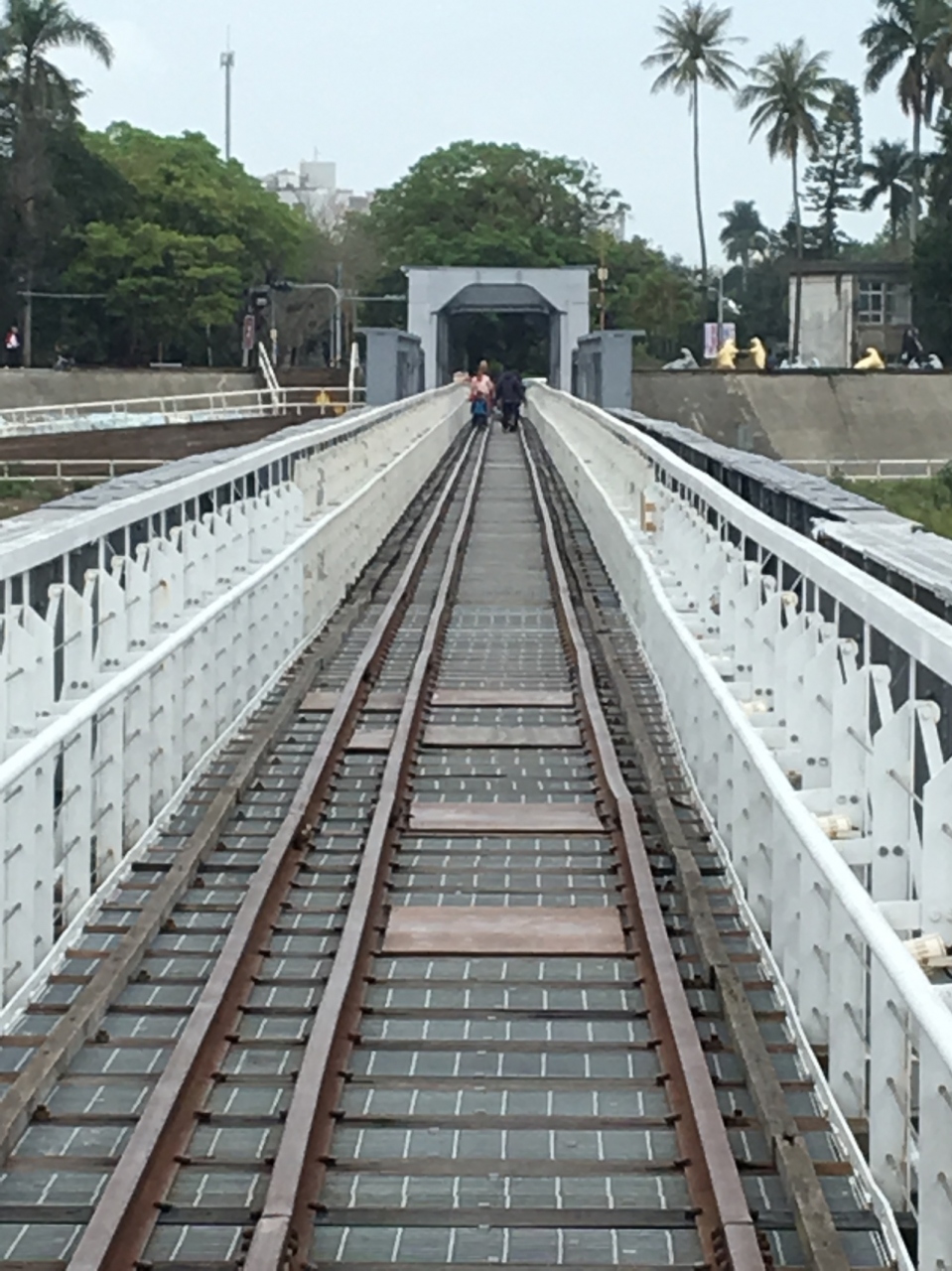 旧虎尾駅から、さらに奥の方に少し歩いて行くと、川に突き当たり鉄橋がかかっています。線路も残されていました。線路の間には、落ちないように網がつけてありました。歩いて対岸まで渡れるようになっていて、対岸まで行ってみましたが、特に何もなかったです。