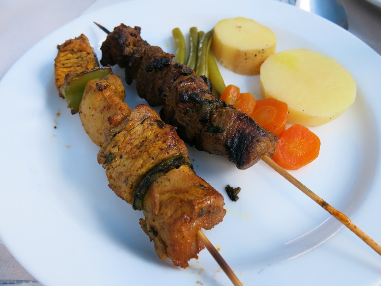 店のオーナーは、自称「サイトウ」さん。すごく日本語も上手でした。日本人客が多いようで、他の店員さんの対応も慣れた感じでした。串焼きを食べてそれなりに美味しかったのですが、果物を絞ったフレッシュジュースも良かったです。モロッコは野菜・果物が豊富で良かったです。