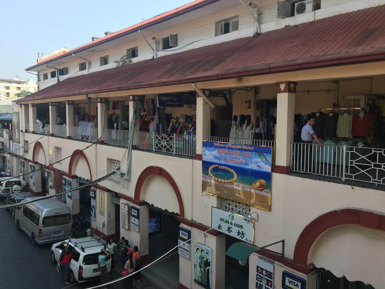 ヤンゴンのダウンタウンにあるマーケットです。お土産物屋さんから宝石店から衣服のお店から買いたいものはなんでも揃うマーケットです。また、観光客も現地の人も様々です。