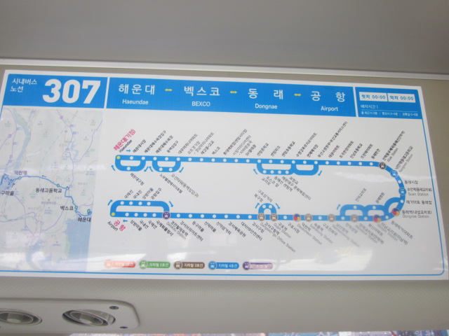 しかしこのバス路線は、途中、東莱や亀浦の市場近くを走行したりもしていて、なかなかその風情も楽しめたりするのがお勧めなので、是非、明るい時間帯に海雲台→空港の向きにて307番の路線バスの風景を楽しんでみて下さい。