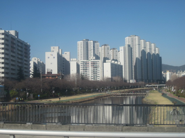 今回は、実は翌月にもう一度訪釜(?)の予定がありましたので、桜の名所として名高い温泉川を下見しておきました。釜山では数年前から「まるごと釜山」という、案内所などで貰える無料パンフ(有料で定期購読もできるみたいです)が普及していますが、そこにここが桜名所として紹介されていました。