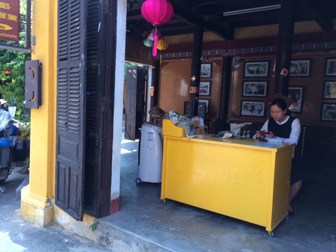 旧市街の有料の建物の中に入るには、チケットが必要です。最初から6枚綴りのチケットを買うか、興味のある所だけその場で2万ドン払うかは自由です。有料の場所が21ケ所あるので事前に決めていった方が良いでしょう。ただ、ベトナム語の地図は必要で、ホテル等でもらえなかったら、12万ドン払ってチケットと一緒にもらうことをお勧めします。チケット売り場は沢山あり、この写真はチャンフー通りとレロイ通りの交差する所です。