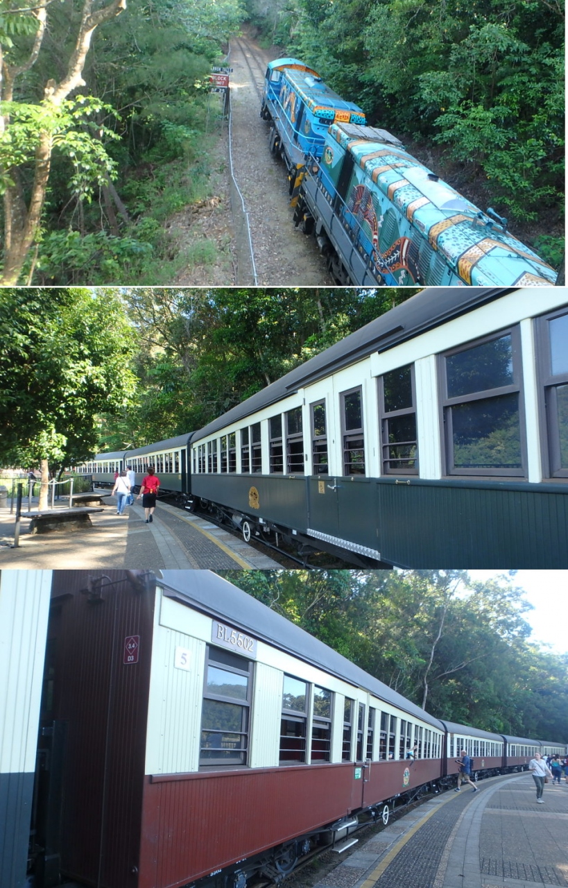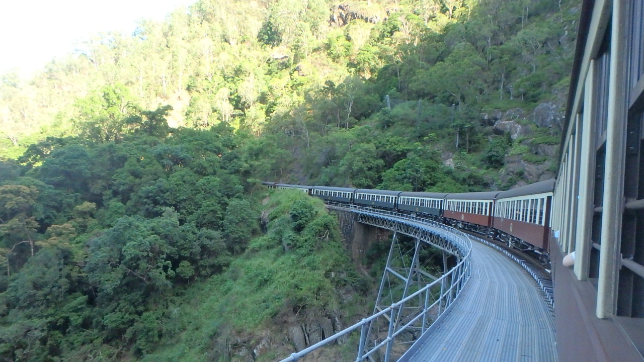 ルートはくねくねしており、途中、バロン滝で10分間の停車があり、約2時間かけてケアンズ駅に向かいます。