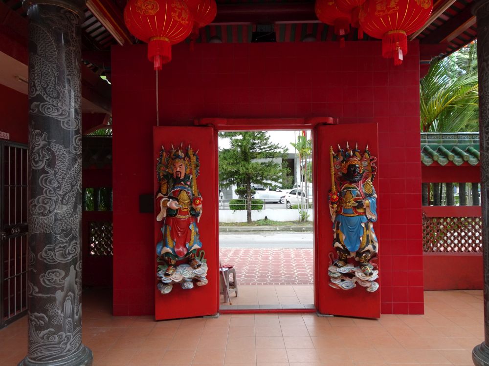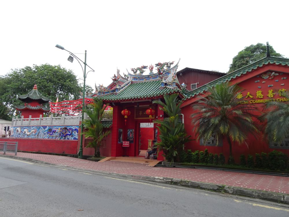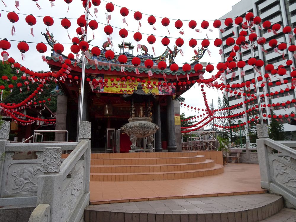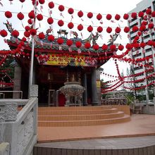 ヒルトンを出て左にちょっと歩くだけで赤い寺院が見えてきました。中国っぽい赤い寺院。中の装飾物も色彩豊かで派手な色合いです。
