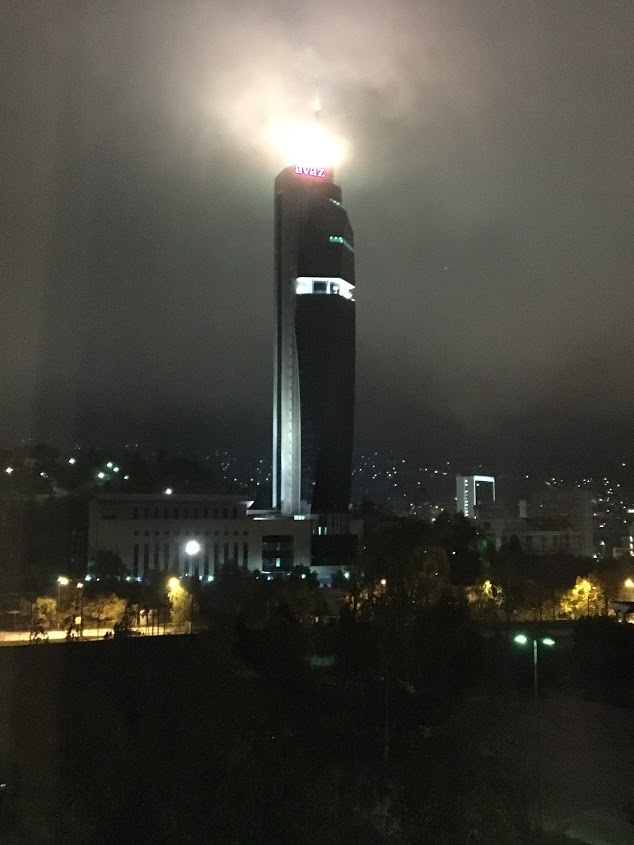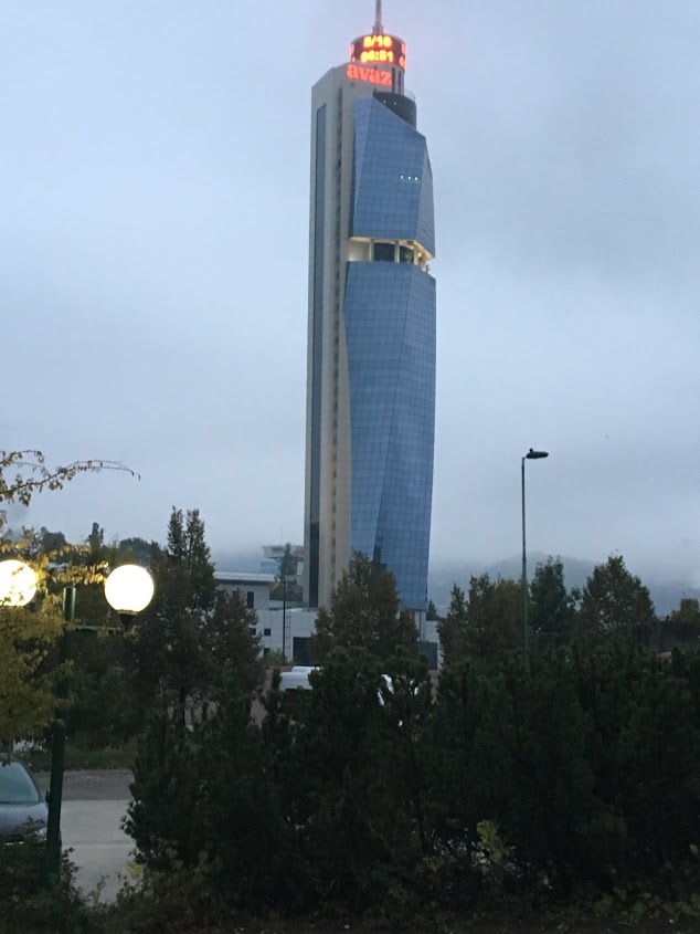 しました。35階にレストランがあってその上には展望室があって360度パノラマビューでサラエヴォの街が見渡せるようです。