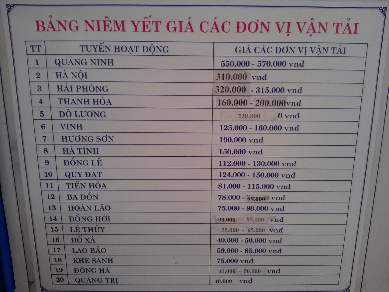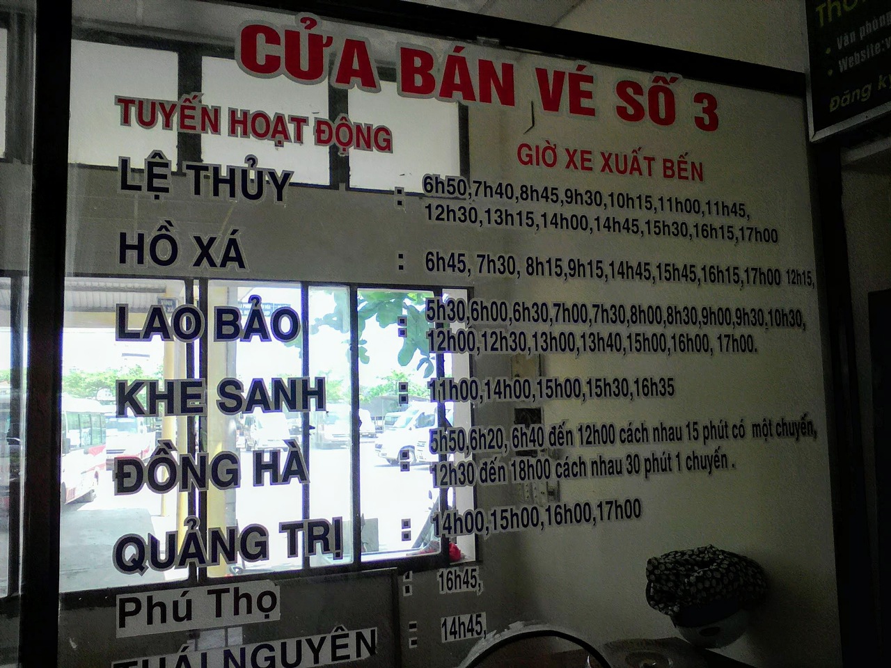 新市街の北西5~6km、Ly Thai To通りにある北バスターミナルです。主に北部方面への長距離バスが発着します。行き先、時刻、料金表を調べに行きましたので参考にして下さい。タクシーやバイタクよりも安く行きたい方は路線バスの利用をおすすめします。1万ドンで行けます。