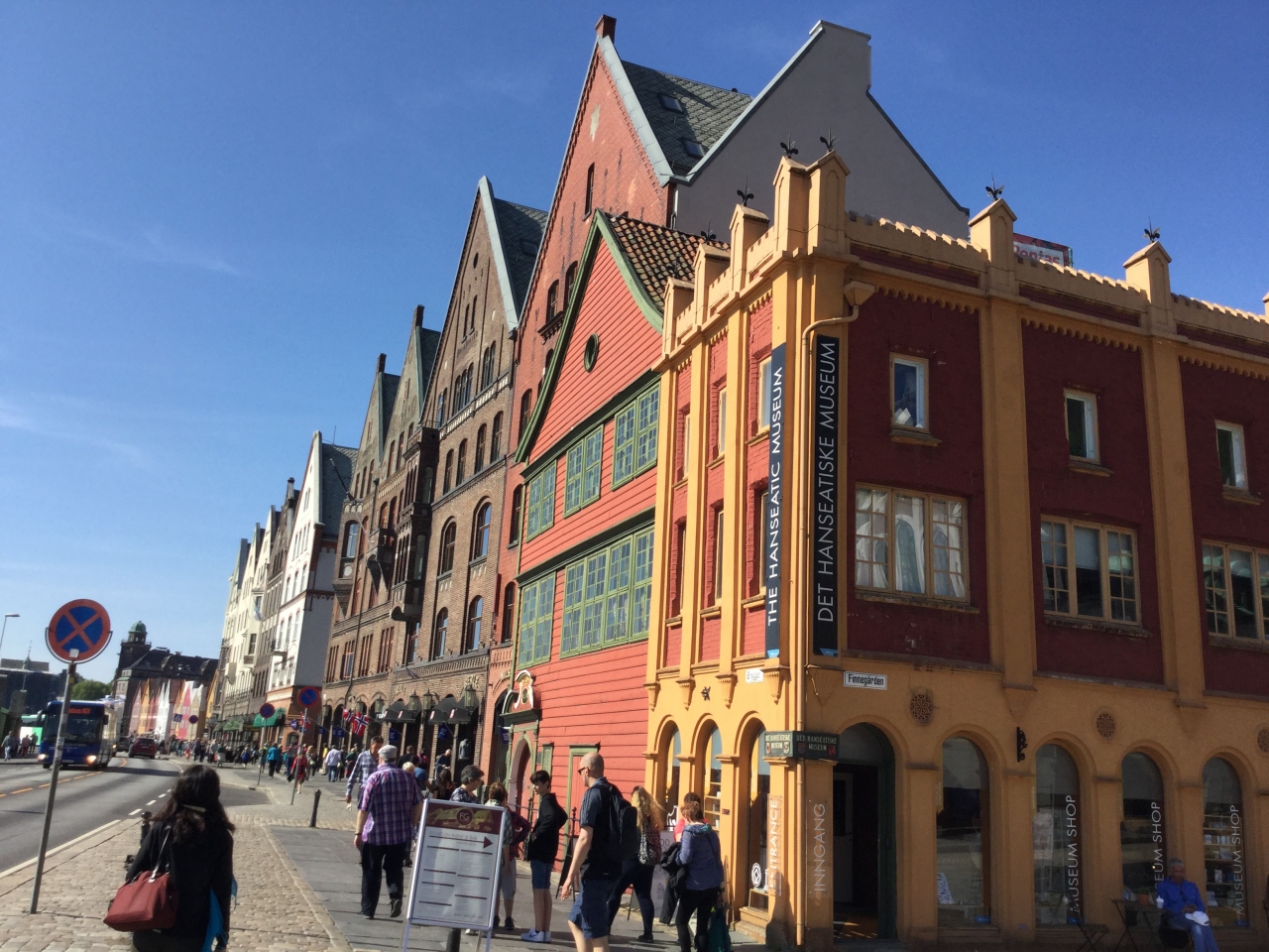 手前の黄色の建物に下から上に、The Hanseatic Museum と書かれています。