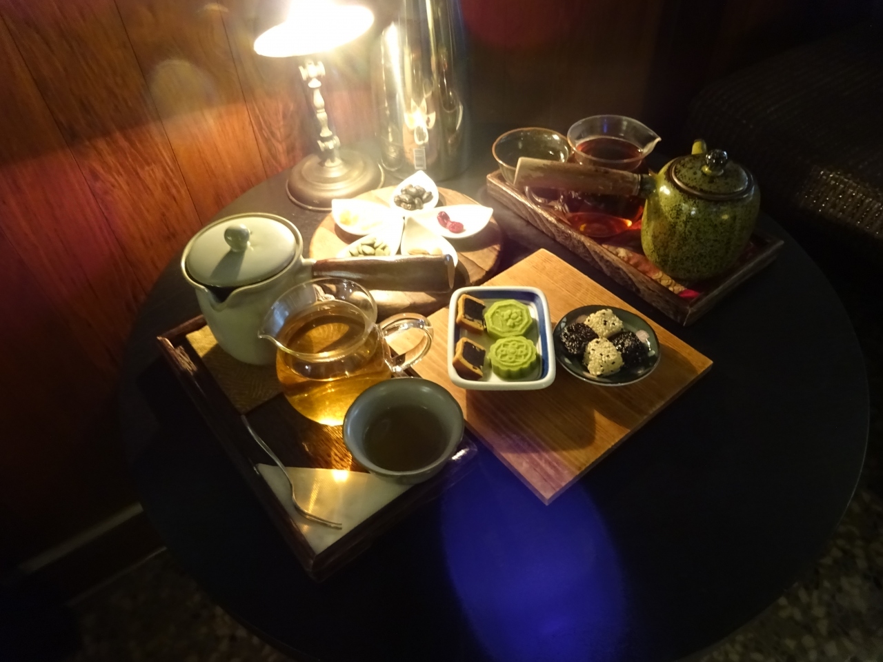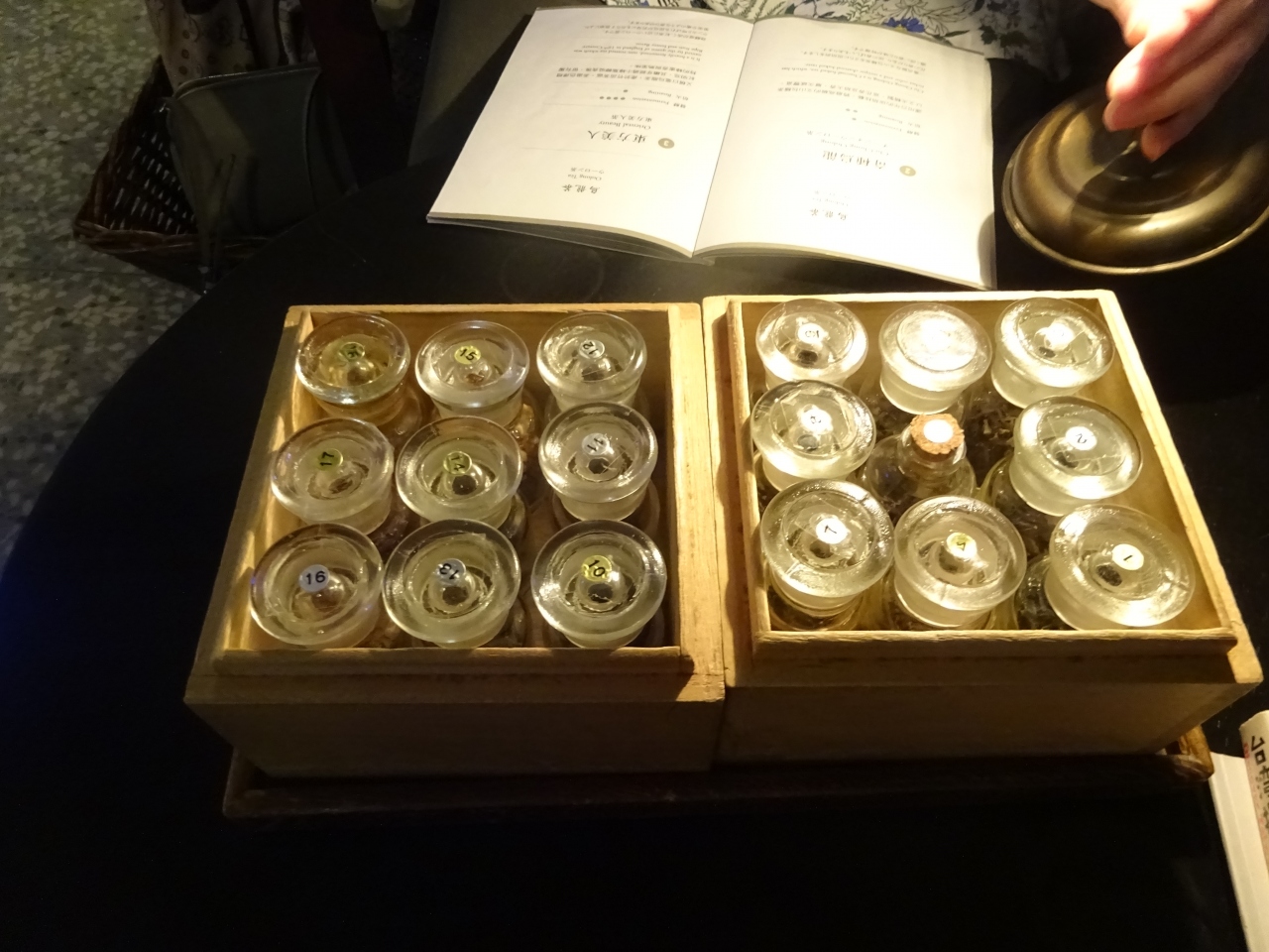 二階はこれまた落ち着いた雰囲気のカフェでした。机や椅子などどれも違ったタイプなのにその空間に見事に調和していてとても憧れます。台湾茶をメインにしたお茶を楽しむカフェでしたが、すべて香りのテイスティングができ自分好みのお茶を選べました。