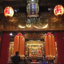 中は赤色がふんだんに使われており、カラフルで華やかなお寺です。