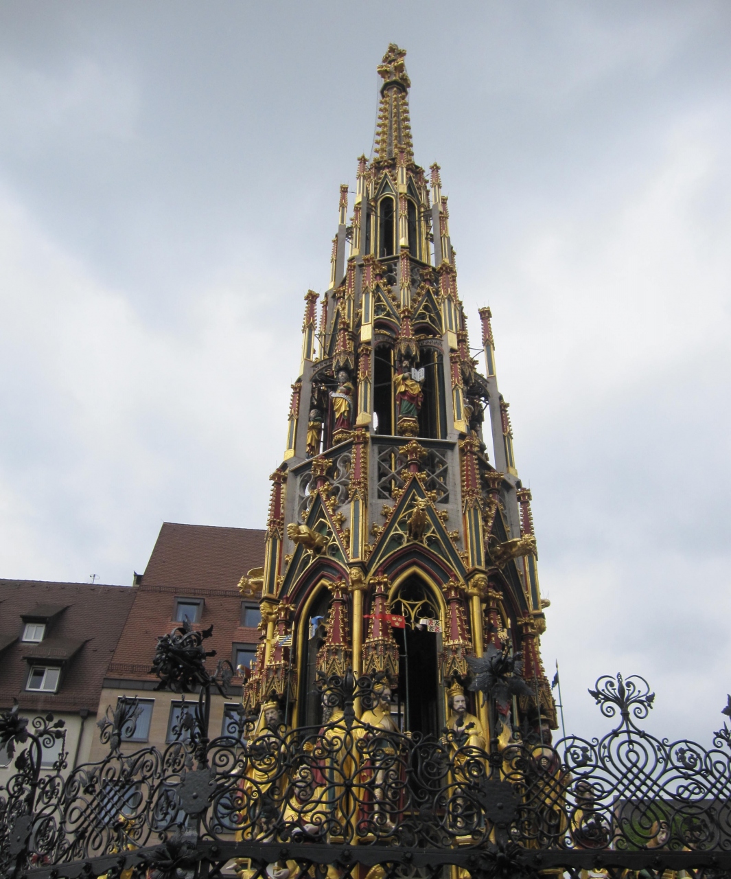 泉という名ですが、実は鉄の欄干に囲まれた八角形のキンキら金塔です。塔を3周回れば願いが叶うといわれていますので、塔の周辺にはつねに人がいっぱいです。広場の一角にありますので、わざわざ探さなくても必ず目に入ります。