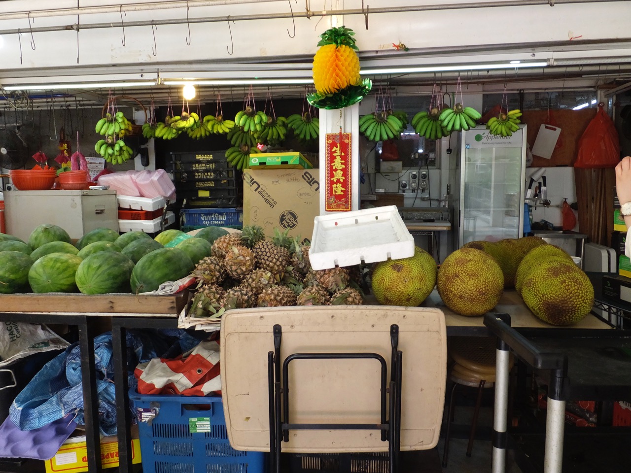 ツアーについていた半日バスツアーでプラナカンショップハウス見学、のついでにガイドさんに、このフードセンターの1階の通りに面した果物売り場で買い食いが紹介され、みなさんいろいろ買って食べてました。ドリアンも売ってました。こんな気軽な利用法もOK。町歩きは楽しいです。