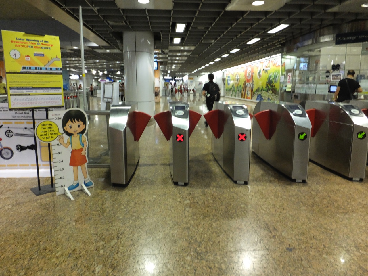MRTの3番目の路線、紫がラインカラーの東北線と、青がラインカラーのダウンタウン線の乗換駅です。乗り換えがちょっと特殊でダウンタウン線のホームから東北線に矢印どおりにいくと遠回りだったりします。人の流れについていくとやや短縮コースに出ました。