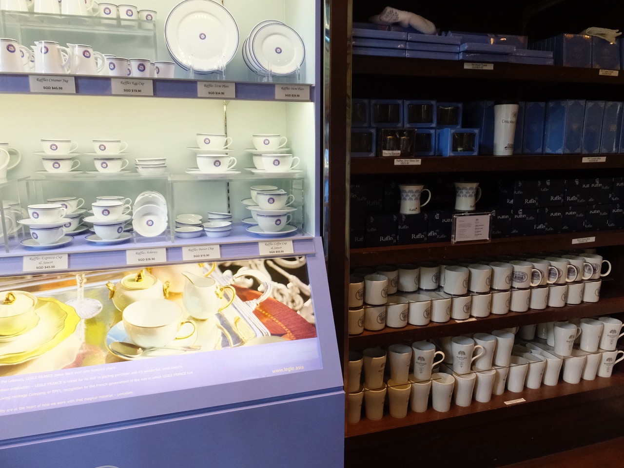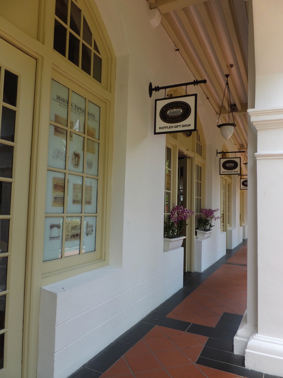 ラッフルズホテルは全室スイートとか。宿泊にはバリアが高いですが、スーベニールショップなら、と訪問。ホテルとは完全に入り口が別にあんっていて、矢印に従っていけば迷うことなくたどり着けました。昔は迷路のようでわからなかったものですが。
