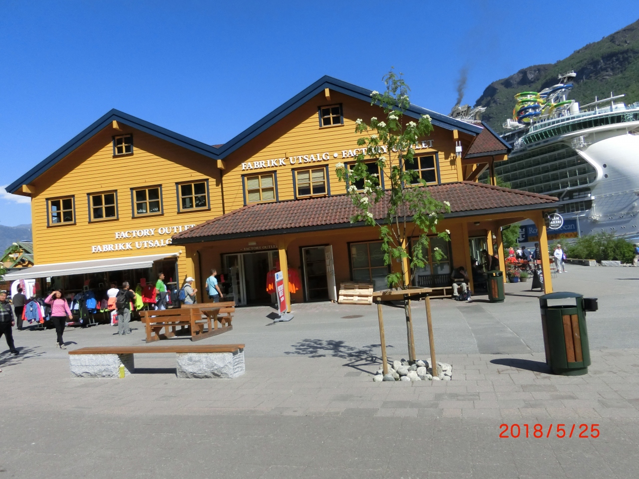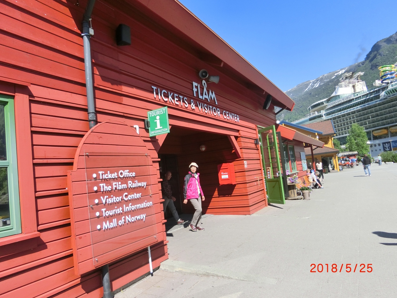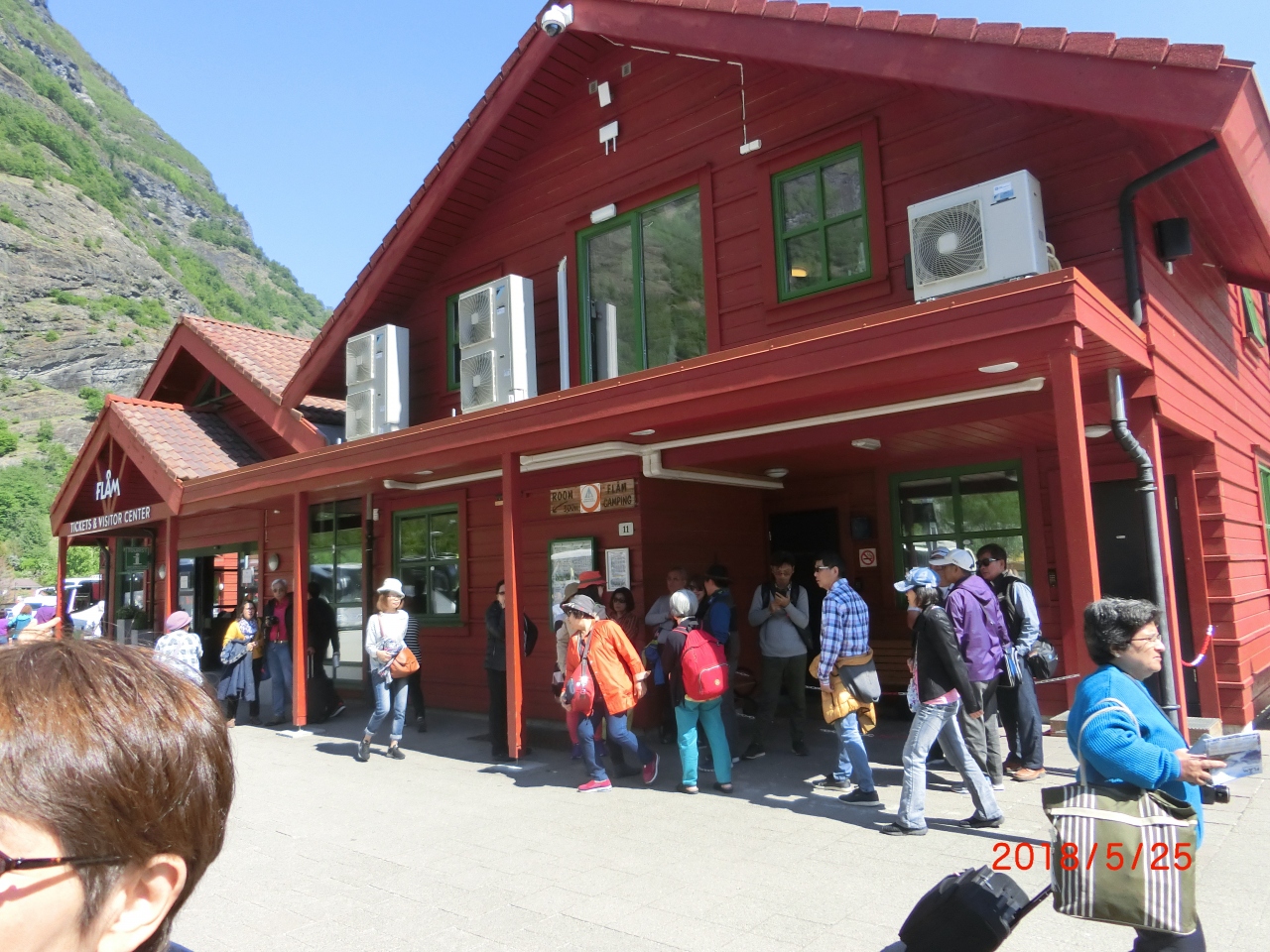 大きな駅ですぐ前がフロム港で船が何捜か停泊しています。