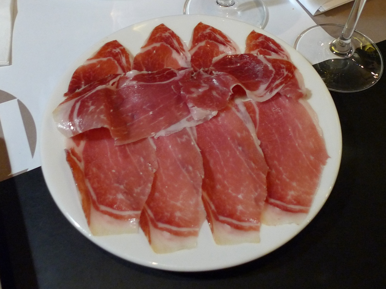 イベリコ豚の生ハム。この時は美味しいと思ったが、後日 Cinco Jotas Rambla で食べたものと比べると完全に負けていた。