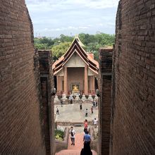 たくさんの仏像に囲まれた寺院です。こちらでは僧侶さんも頻繁に見かけました。寺院の中に階段があり、そこから見る景色もとても綺麗でした。また、寺院の中に大きなお釈迦様がいて、観光客だけではなく地元の人もお参りしていました。今でも、地元の人に愛されている寺院なんだなと感じました。