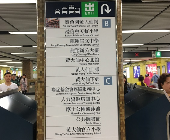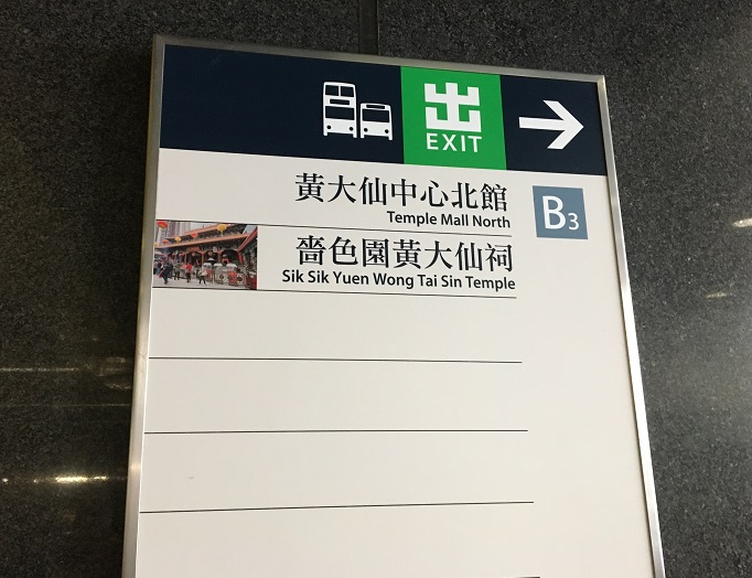 今回黄大仙に行くために利用しました。駅からどうやって行くのかきちんと調べてなかったので心配しながら降り立ちましたが、案内の通りB3出口から出たら、目の前に見えていました。
