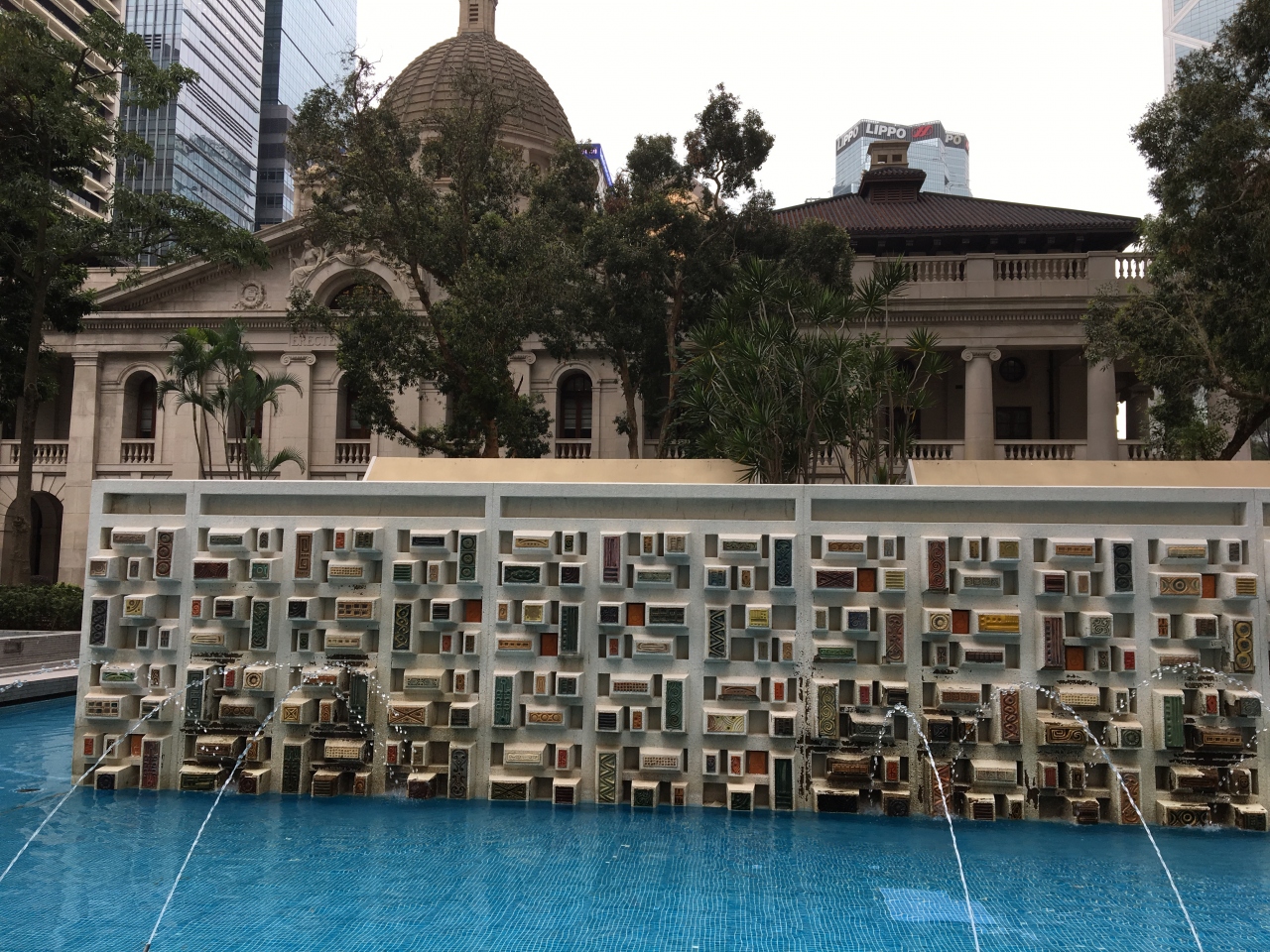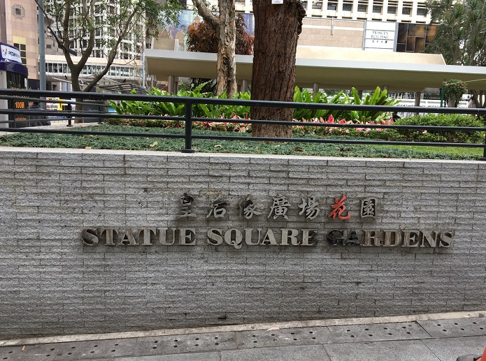 MTR中環駅J1出口を上がったところにあります。ちょっと変わった噴水?にひかれて行ってみたら「皇后像広場花園」と看板が・・でも皇后像はいくら探してもありませんでした。移転したんですね~