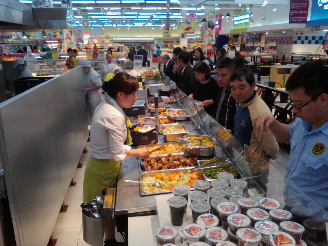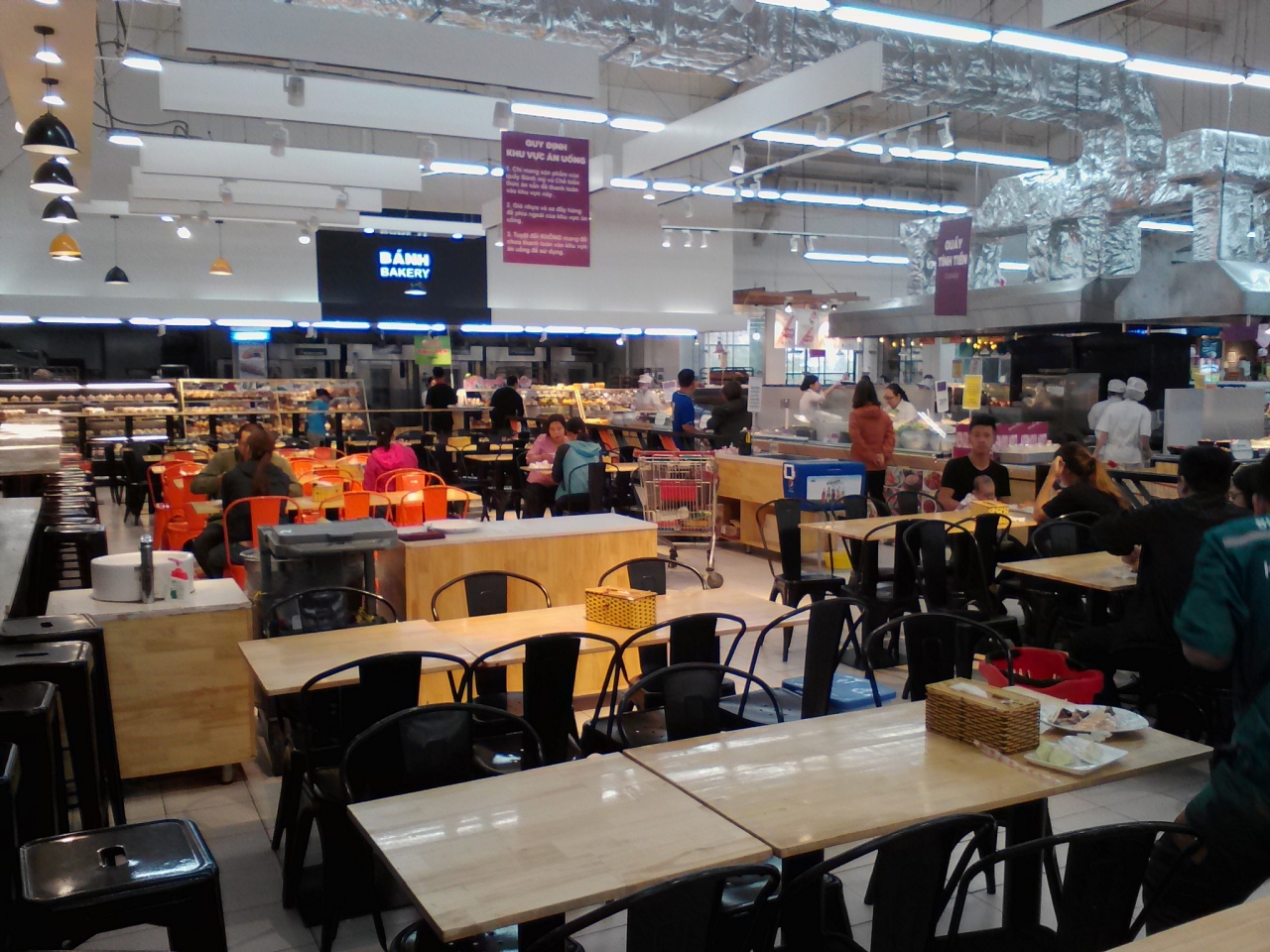 1階はアパレルなどの店が入ったショッピングエリアでスーパーマーケットは2階になります。品揃えは他の町の店舗と変わりませんがこの店舗のいいところはデリコーナー、お弁当が充実していること。なんとデリの真ん前にイートインスペースがあり、買ったものがすぐその場で食べられます。ちょうど昼頃だったのでチャーハン(コムチエン)をいただいてみました。デリなので好きな分よそってもらい重さを量ってお会計ですが、値段を言えばその分だけよそってもらえます。実際にはぴったりにするのは手間がかかるのでだいたいですが…。私は15000ドンとオーダーし、16501ドンでした(実際の支払いは16500ドン)。明朗会計で注文しやすくてグッドです。しかしもう少しきれいには盛れないのかなぁ、まぁそこはご愛嬌と言うことで…。昼頃はなかなかの人で混み合います。ただ場所が市内中心部からやや離れているため残念ながら利用価値はやや低いかなと思います。