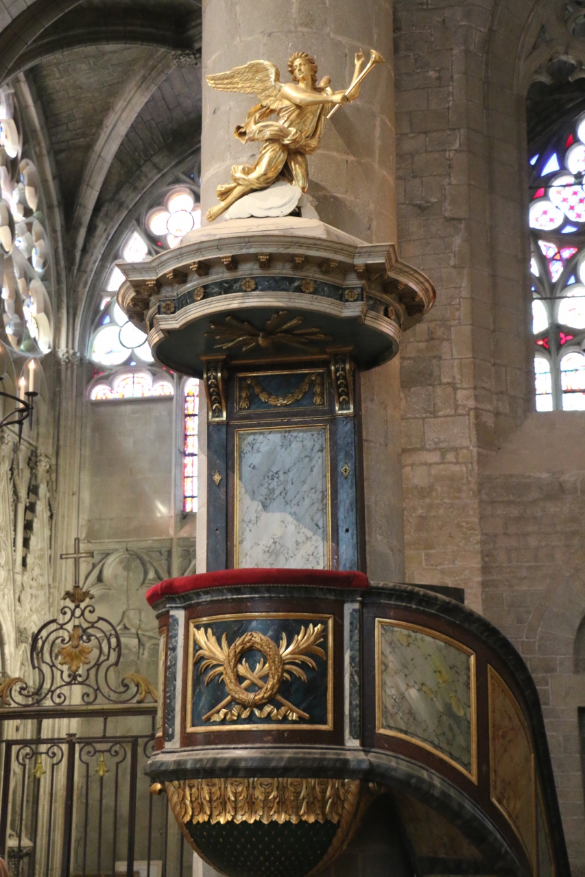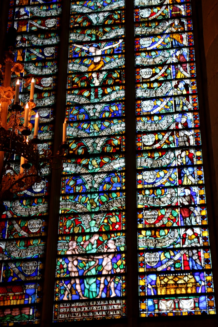 身廊はロマネスク様式で太い柱が特徴的ですし、後陣はゴシック様式でステンドグラスが大変見事です。