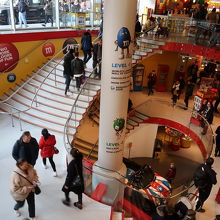 しかも店はワンフロアだけではなく、何階もあってひろい!外から目立つだけあって入ったところは混んでいますが、階下はさすがに空いていそうな感じでした。入口のエムズ君が並んでいるところは、まさにインスタスポットですね。