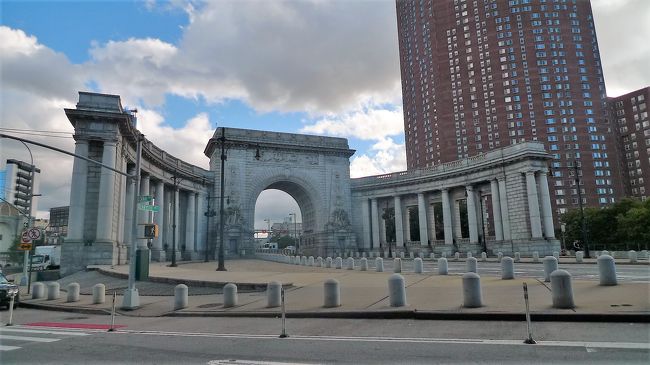 "孔子プラザ"の凱旋門はマンハッタンブリッジの入口で