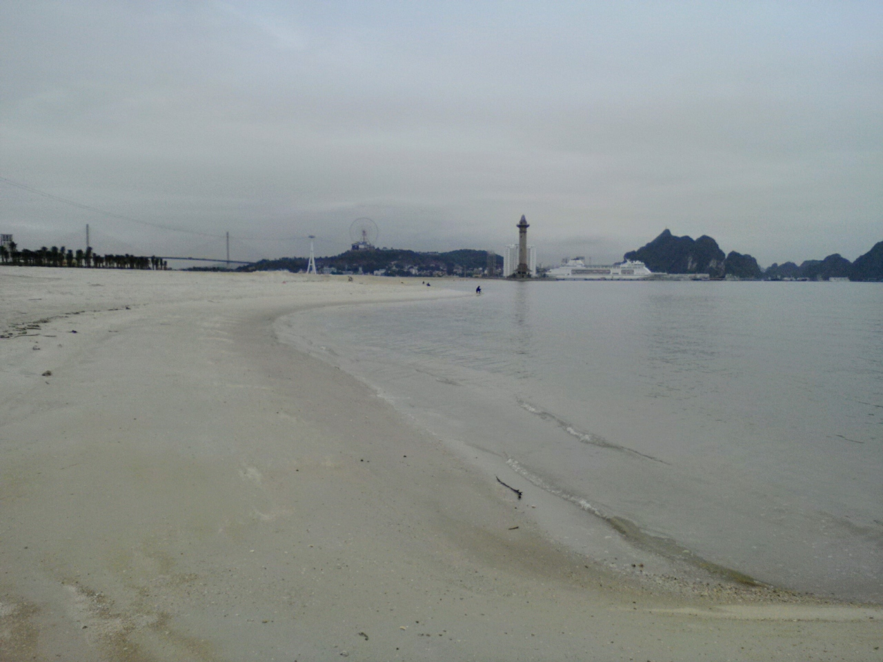 砂を運び込んで造られた人工のビーチです。しかしシーズンオフだからでしょうか周辺の道路と合わせて造成工事中でした。どうせこんな天気が悪く寒い時期に海に入ろうなんて輩はいないので別にいいんですが…。地元の人が数人釣りをしているだけでした。